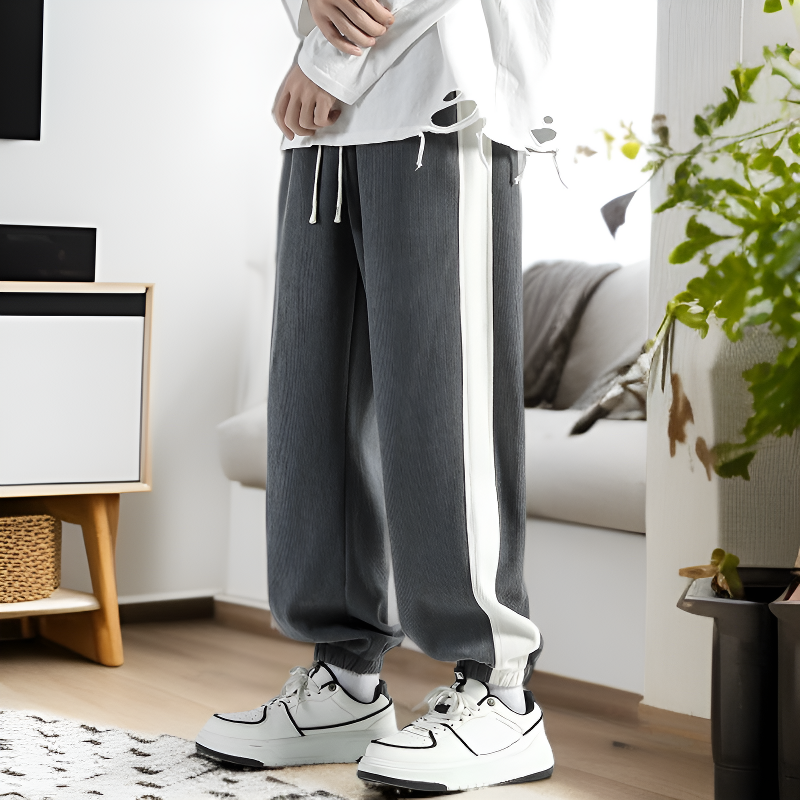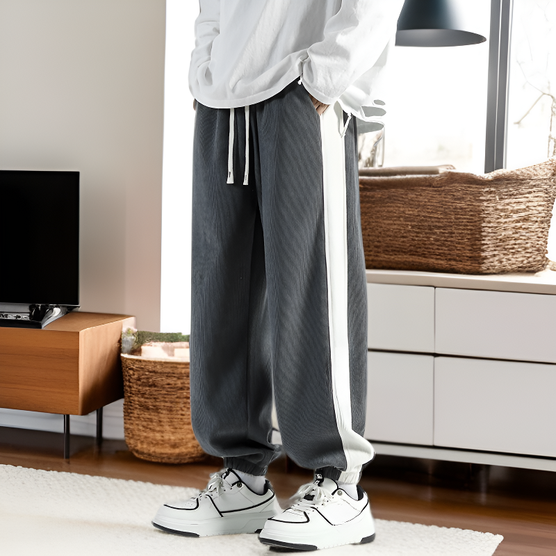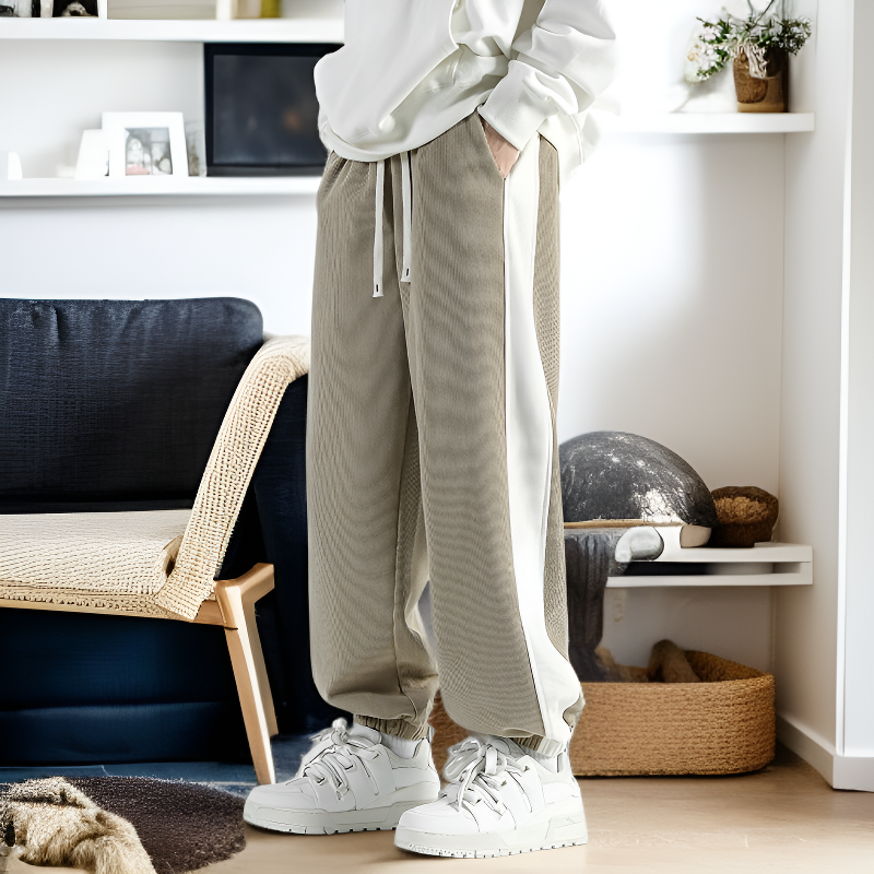 ● 부드럽고 따뜻한 코듀로이 소재로 제작되어 가을, 겨울 시즌에도 편안하게 착용할 수 있습니다. ● 루즈핏 디자인으로 활동성이 뛰어나며, 캐주얼한 스타일을 연출할 수 있어 다양한 코디에 활용 가능합니다. ● 허리 밴딩 처리로 착용감이 우수하고, 트레이닝 팬츠 특유의 편안함을 느낄 수 있습니다. ● 남성용으로 디자인된 팬츠로 세련된 실루엣과 트렌디한 분위기를 동시에 제공합니다. ● 내구성이 뛰어난 소재와 꼼꼼한 마감으로 오래도록 변형 없이 입을 수 있는 제품입니다.